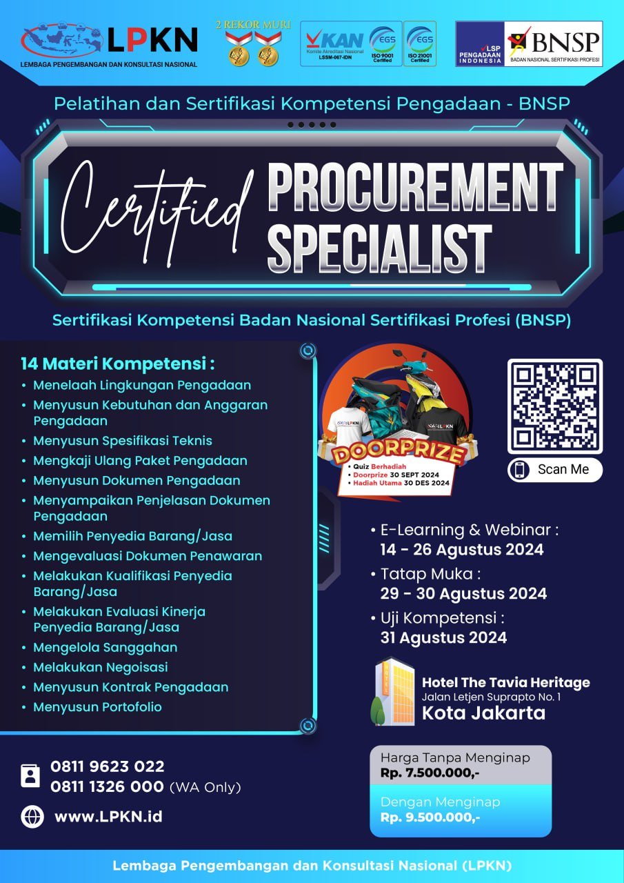 Sertifikasi Pengadaan Sebagai Lembaga Pelatihan SDM Pemerintah, BUMN, dan Swasta No.1 di Indonesia